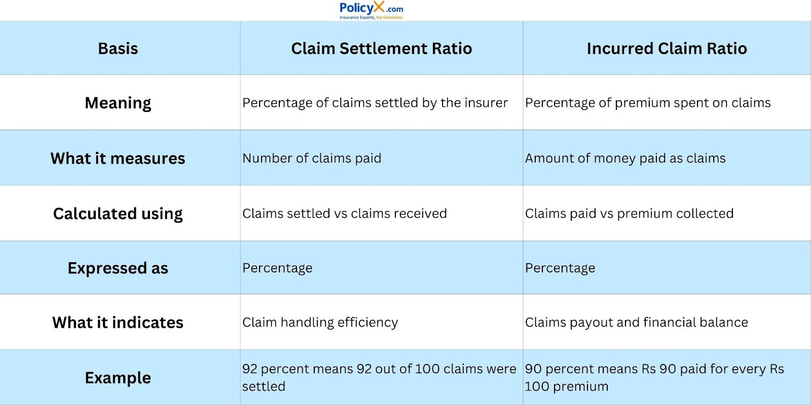 Difference Between Incurred Claims Ratio and Claim Settlement Ratio