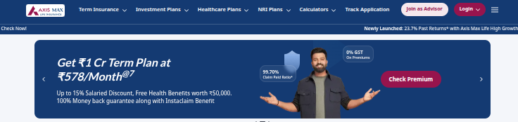 चरण 1“एक्सिस मैक्स लाइफ इंश्योरेंस” की आधिकारिक वेबसाइट पर जाएं।
